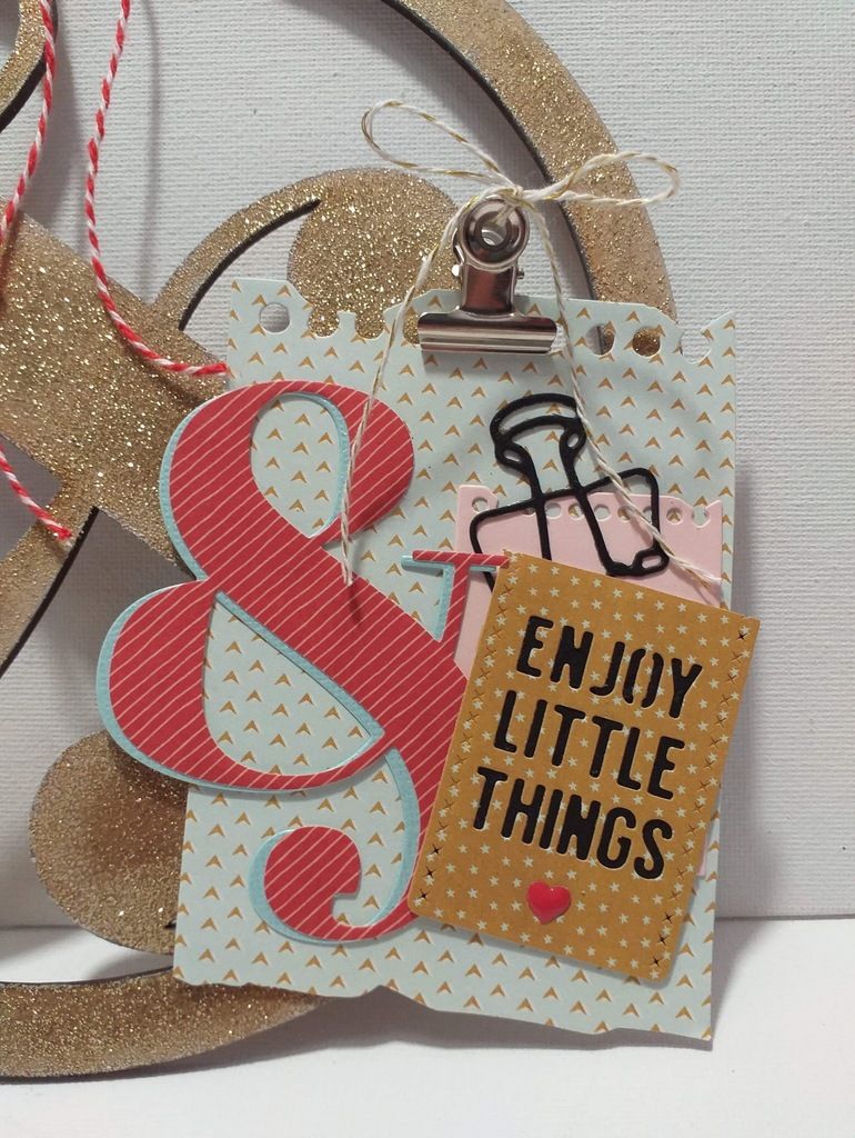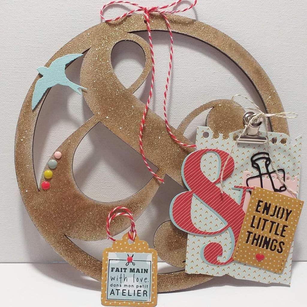 Jai décoré un cercle esperluette"&" en MDF FDS ,de l’embossage à chaud avec de la poudre paillettes et quelques découpes.