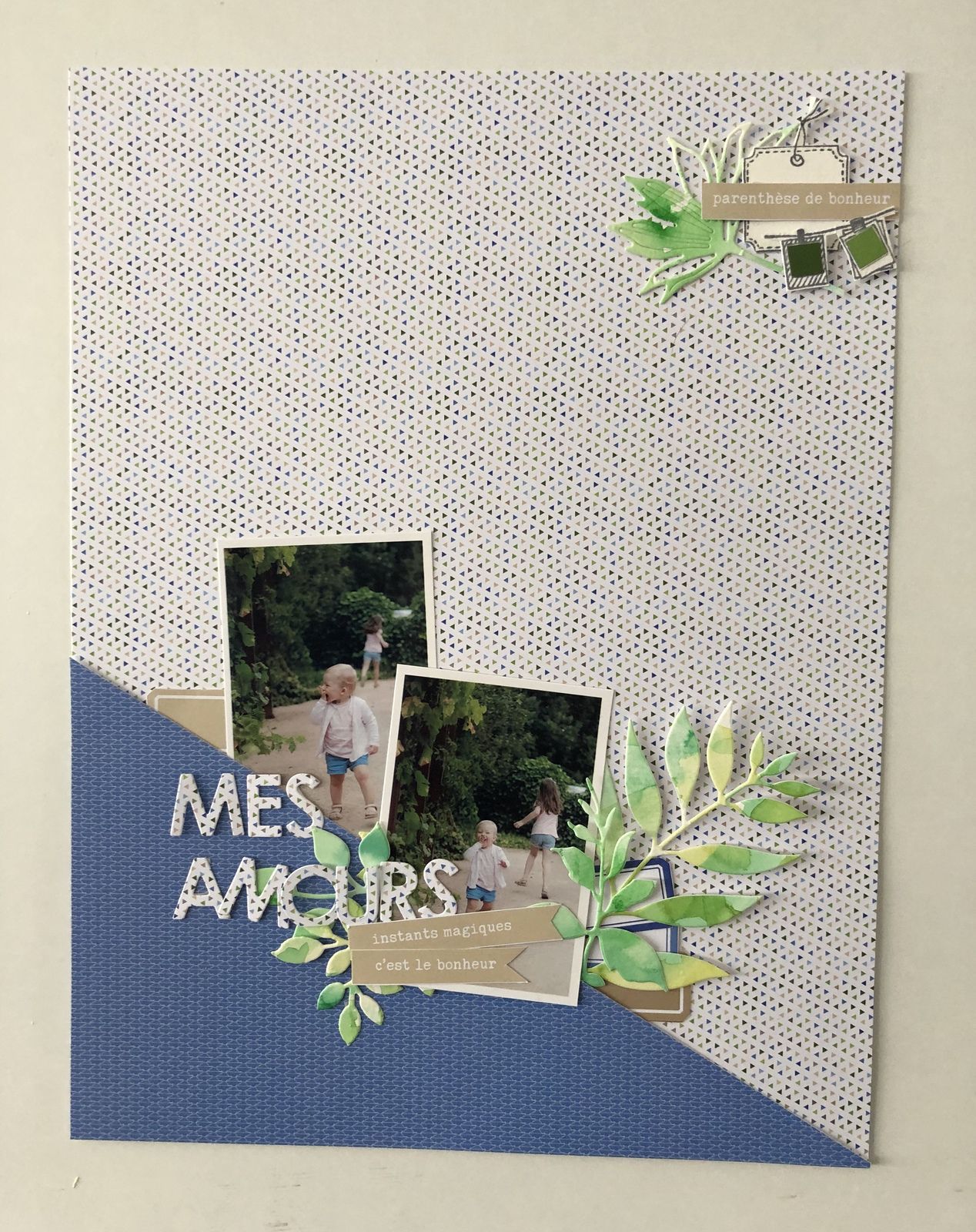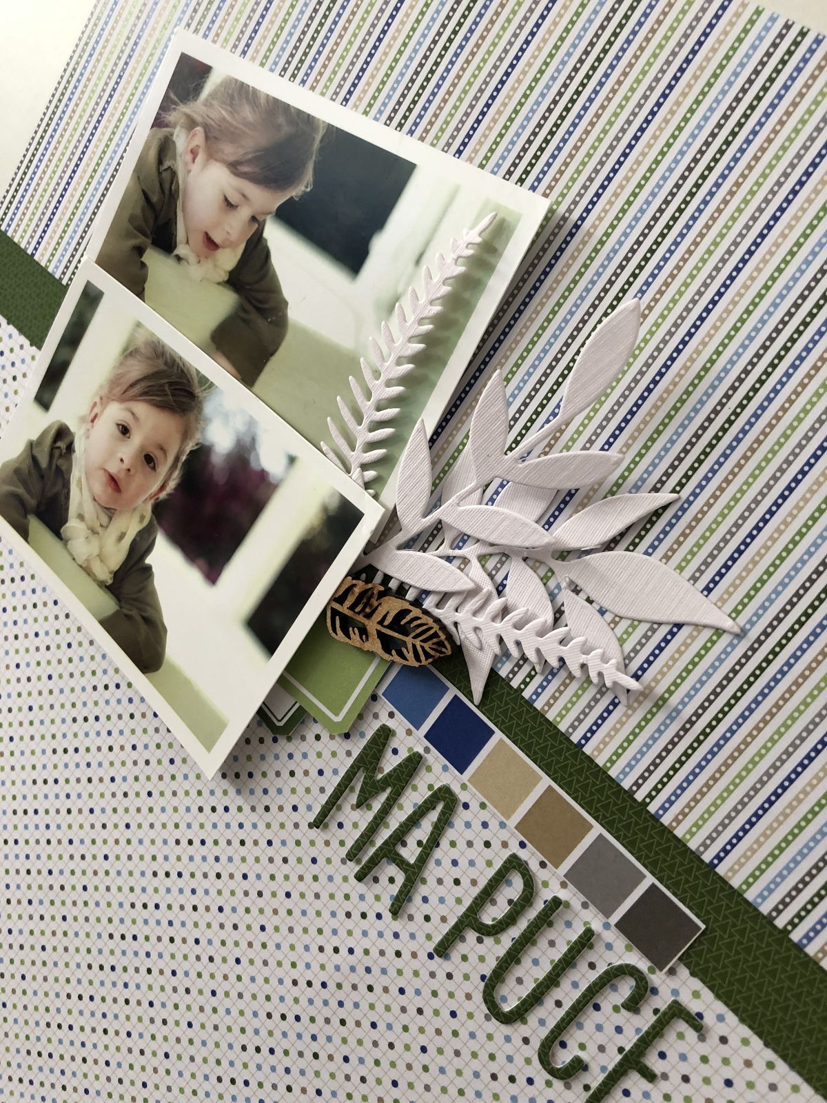 Photo avec une dominante de vert , j’ai utilisé des dies florilèges et des embellissements bois de la fée du scrap