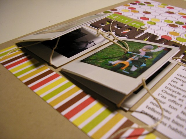 Et pour la seconde, qui sera la première page de mon album 2011, je me suis amusée comme une folle à tamponner en Kesi'Art!